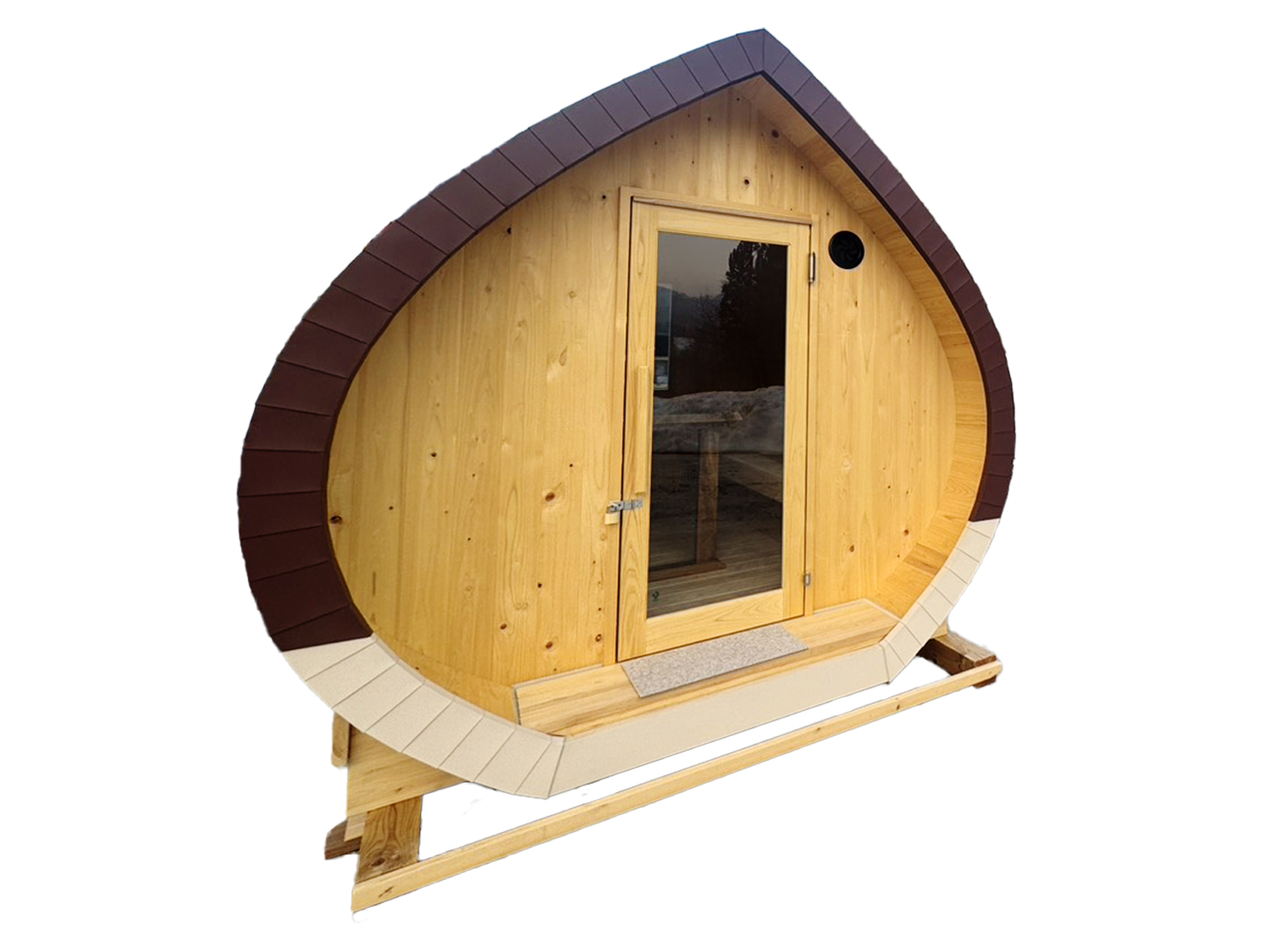 大津工務店が試行錯誤を重ねて試作した「栗型サウナ(マロンドーム)」